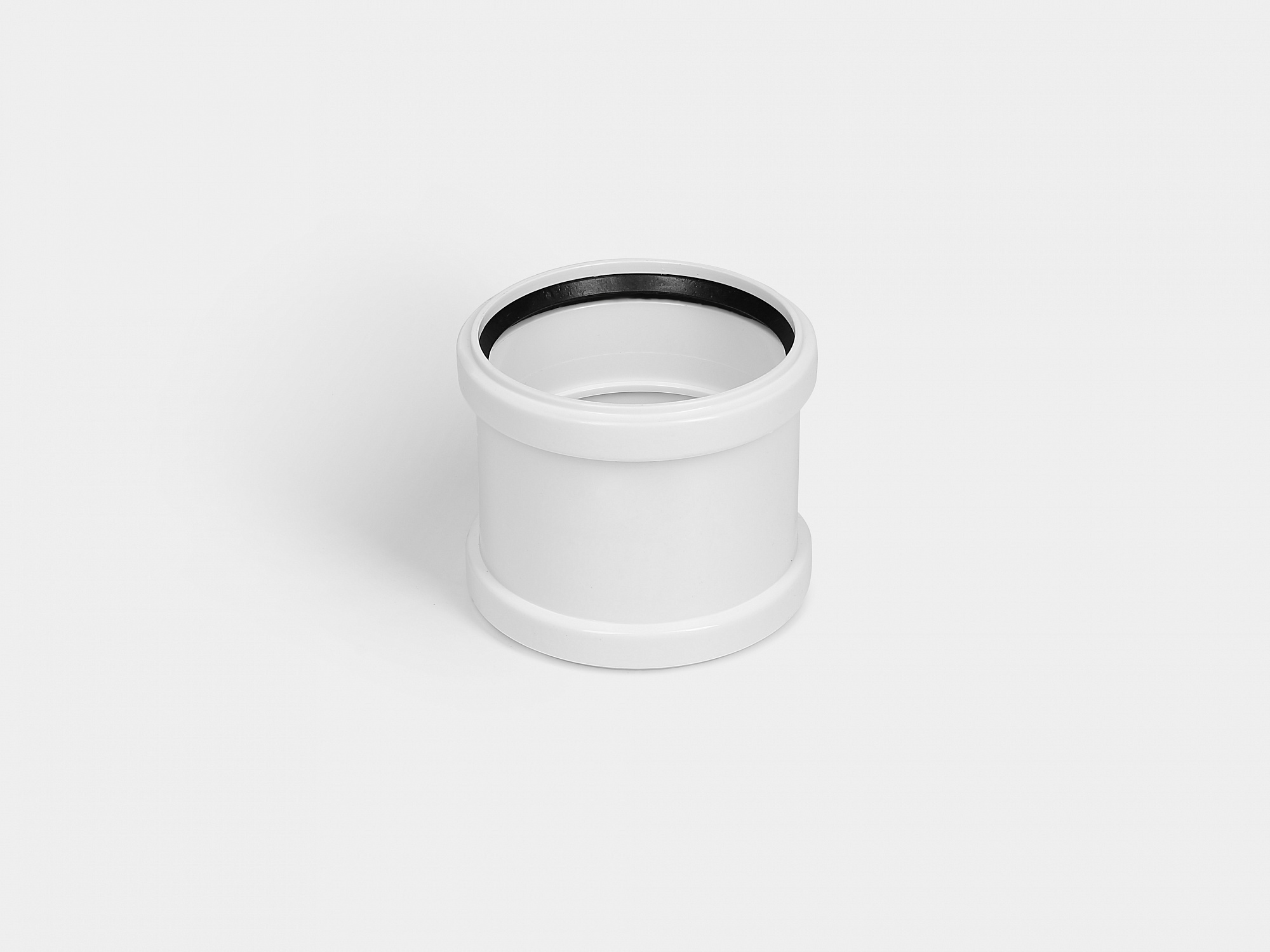 Муфта канализационная двухраструбная D110 УЮТ КОНТУР изготовлена из полипропилена и сополимеров пропилена с добавление минерального наполнителя